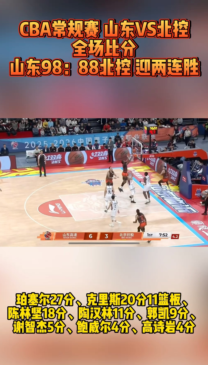 果然视频|山东98:88复仇北控,珀塞尔27分,克里斯两双 昨天21:51 原创齐鲁晚报·齐鲁壹点客户端 微信扫码扫码下载客户端12月20日晚,CBA常规赛继续进行,山东高速男篮继续坐镇临沂主场,迎来与北控的二番战。最终,山东男篮98:88复仇北控,迎两连胜。珀塞尔27分,克里斯20分11篮板。(齐鲁晚报·齐鲁壹点 冯子涵)