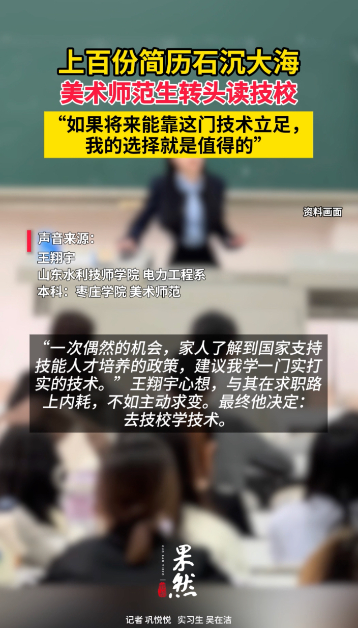 选择去技校深造的本科师范生:“如果能找到好工作,我就没白学”齐鲁晚报·齐鲁壹点客户端 昨天07:09原创(记者 巩悦悦 实习生 吴在洁)王翔宇曾通过专升本进入本科,却在求职路上屡屡受阻。这段经历促使他重新审视自己的方向。“与其在不确定中反复尝试,不如主动学一门扎实的技术。”在了解到国家技能人才培养的相关政策后,王翔宇做出了一个出人意料的决定:进入山东某技师学院,学习电力专业。