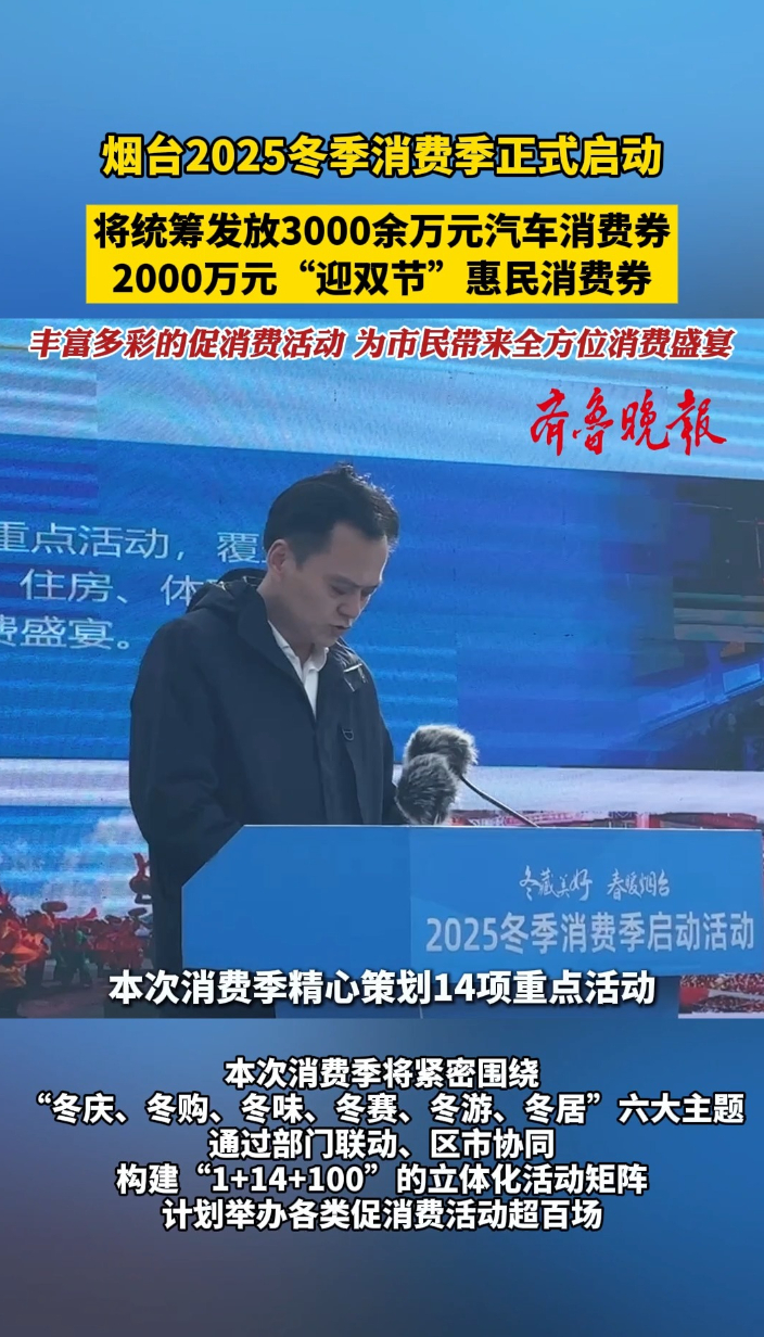 果然视频|烟台2025冬季消费季启动,将发放汽车、惠民消费券齐鲁晚报·齐鲁壹点客户端 昨天09:27原创12月20日上午,“冬藏美好 春暖烟台——2025冬季消费季”启动活动在烟台回里农博园举行。据悉,本次消费季真金白银的补贴持续加码,将统筹发放3000余万元汽车消费券与2000万元“迎双节”惠民消费券。(齐鲁晚报·齐鲁壹点 杜晓丹)