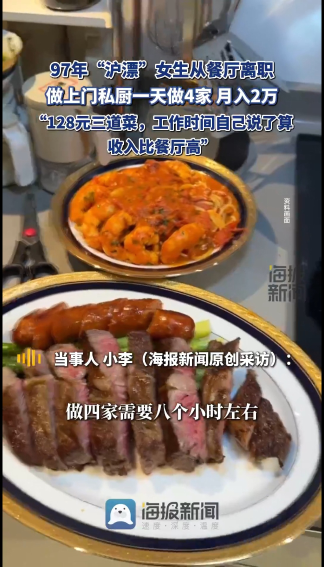 97年“沪漂”女生从餐厅离职做上门私厨月入2万:128元三道菜,工作时间自己说了算
