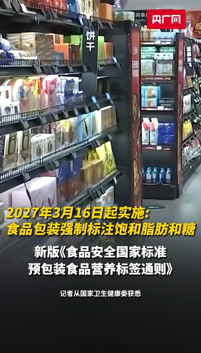 2027年3月16日起实施:食品包装强制标注饱和脂肪和糖