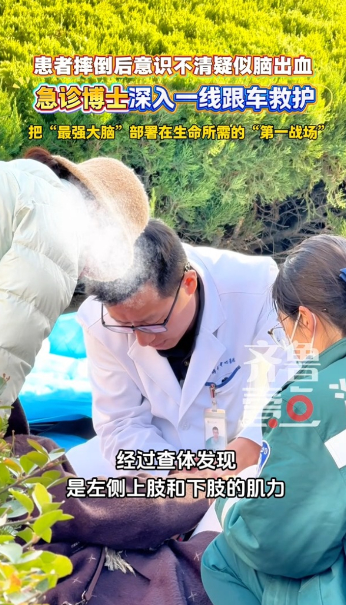 患者摔倒后左侧身体无力,疑似脑梗!急诊博士深入一线,跟车救护,把“最强大脑”部署在生命所需的“第一战场”!