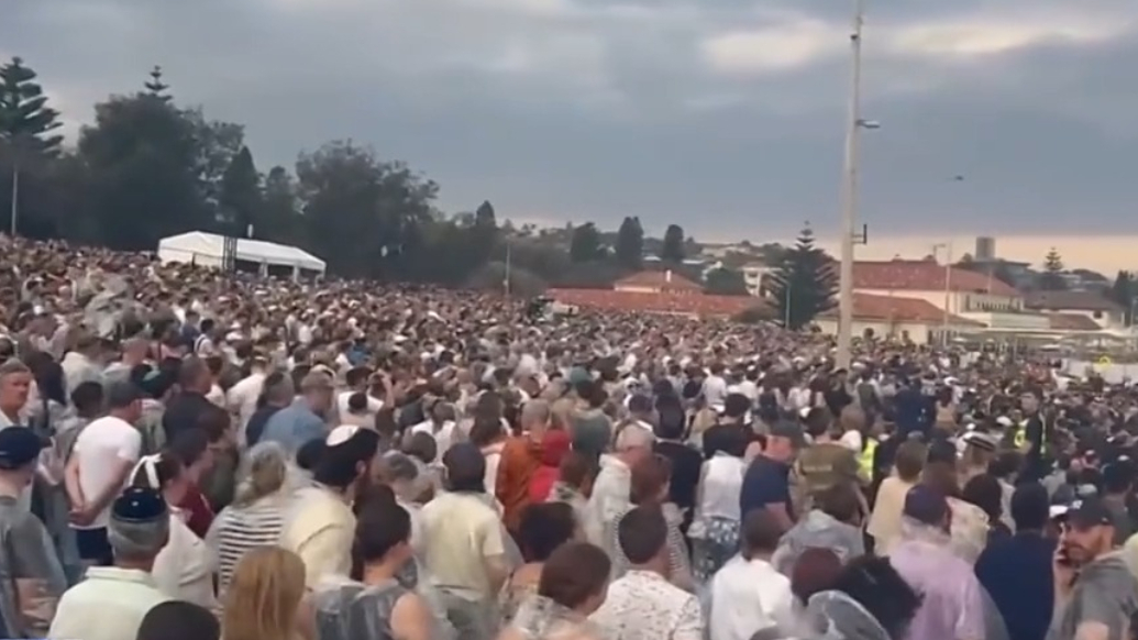 当地时间12月21日,枪击案发生一周后,澳大利亚悉尼邦迪海滩举行遇难者悼念活动。 (央视新闻)