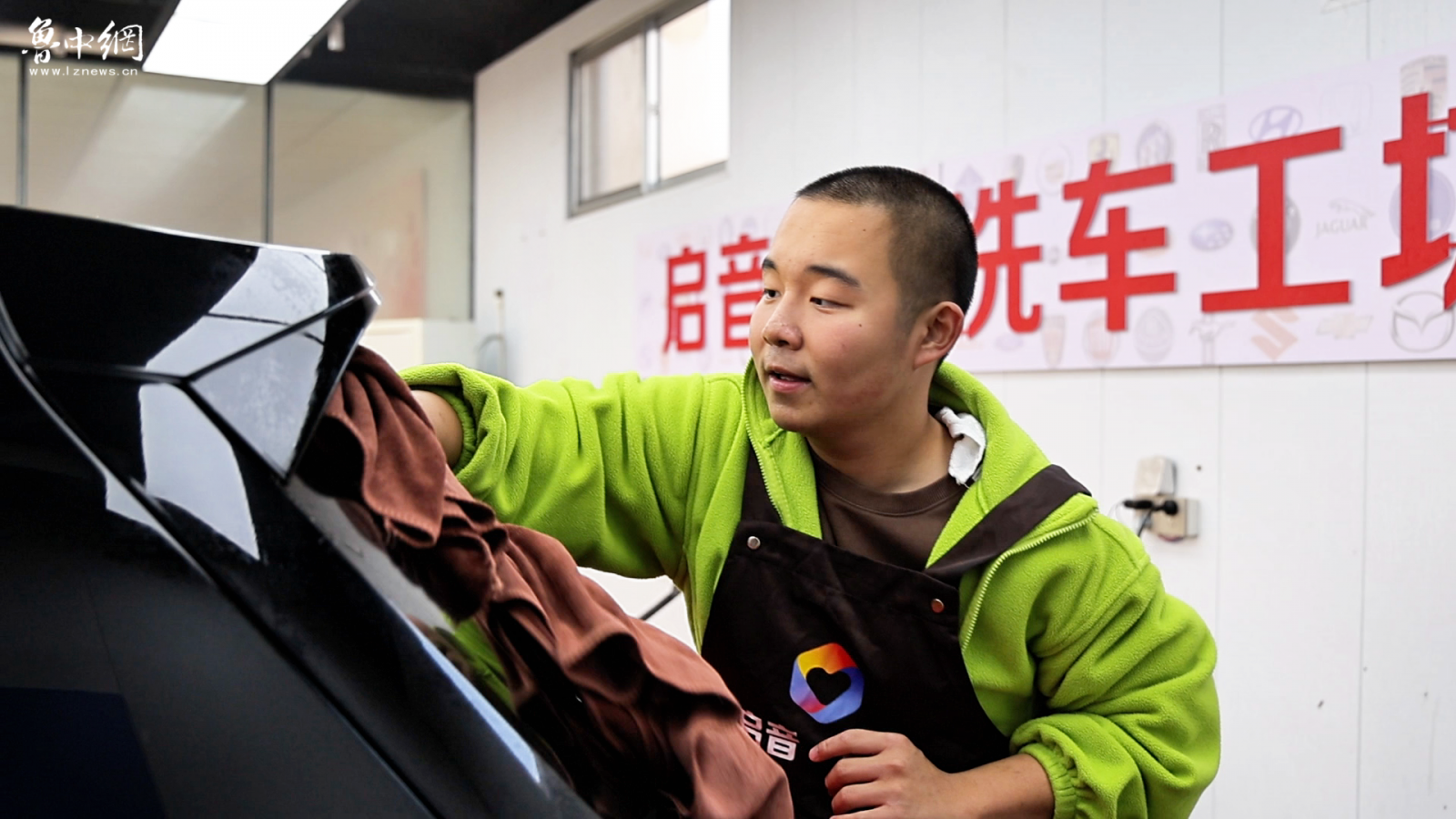 “我负责擦后备箱、擦门、冲水、打泡沫。”21岁的梁靖聿一边用毛巾擦拭车门边框,一边有些腼腆地对记者说,“在这里我还能跟小伙伴们一起,打牌、吃烤肉,我很开心。”