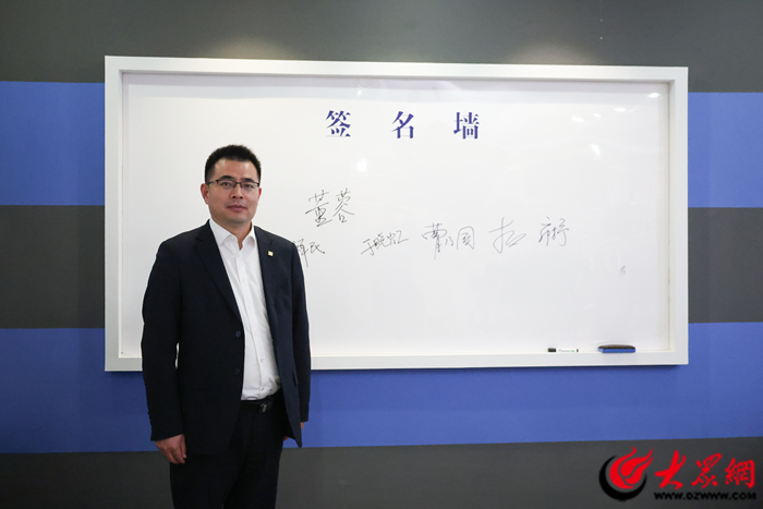 长城人寿泰安中支总经理郭东宁做客大众网泰安演播室(记者 兰帅 摄)
