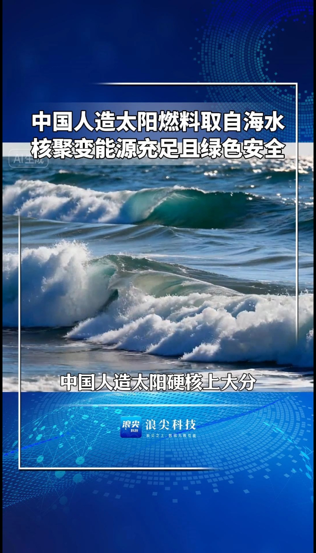 浪尖科技 | 点赞!中国人造太阳燃料取自海水 人造太阳硬核上大分 17:19 浪尖科技 微信扫码扫码下载客户端在太阳核心,氢原子不断碰撞聚变,释放出巨大能量。因此,可控核聚变也被称为“人造太阳”。人造太阳以海水中提取的“氘”为主要燃料,核聚变能源充足且绿色安全,无温室气体排放与熔毁风险。按计划,正在安徽合肥建设的可控核聚变装置“BEST”,将于2027年底完成主机系统建造,为全球能源转型提供中国力量。