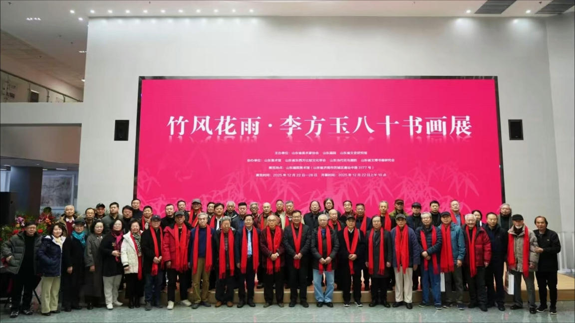 展讯 | "竹风花雨——李方玉八十书画展"在山东画院美术馆开幕 19:58 原创大众新闻·大众日报 微信扫码扫码下载客户端2025年12月22日,由山东省美术家协会、山东画院、山东省文史研究馆联合主办,山东美术馆等单位协办的"竹风花雨——李方玉八十书画展"在山东画院美术馆开幕。(大众新闻记者 贾佳 曹英瀚)