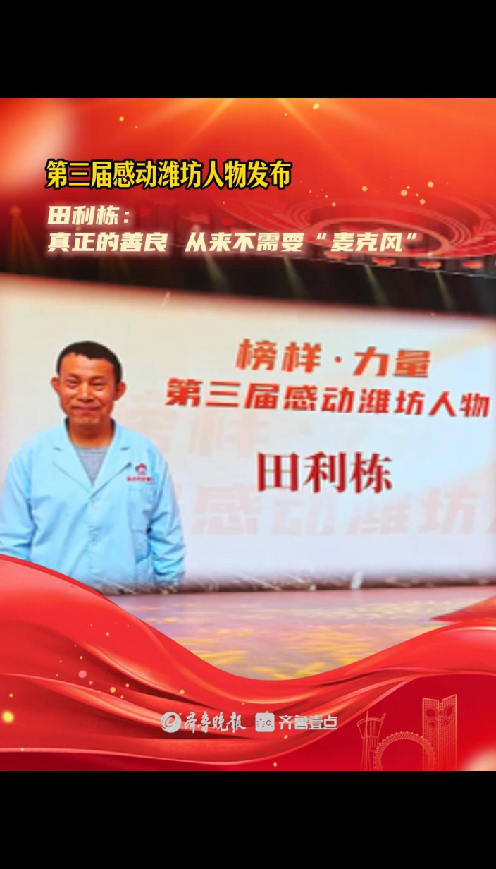 榜样·力量|感动潍坊人物田利栋唱《世上只有妈妈好》时泪洒现场齐鲁晚报·齐鲁壹点客户端 00:24原创12月22日,榜样·力量——第三届感动潍坊人物发布仪式现场,安丘市养老服务集团的护理员田利栋,以五千多个日夜的默默坚守,将“老吾老以及人之老”的传统美德融入每一次耐心地喂饭、每一遍细致地翻身和每一句温暖地叮咛中。对于护理的每位老人的用药剂量、饮食禁忌、情绪波动,甚至爱听的家常话,他都了然于胸,让每位老人感受到家的温暖。 齐鲁晚报·齐鲁壹点 田思敏 王佳潼 马小杰