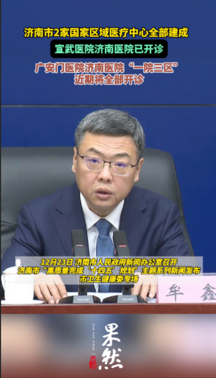 果然视频|广安门医院济南医院“一院三区”近期将全部开诊齐鲁晚报·齐鲁壹点客户端 16:30原创12月23日,济南市人民政府新闻办公室召开济南市“高质量完成‘十四五’规划”主题系列新闻发布会——市卫生健康委专场,介绍“十四五”以来济南市推动卫生健康事业高质量发展的有关情况。记者在会上获悉,广安门医院济南医院“一院三区”近期将全部开诊。(齐鲁晚报·齐鲁壹点记者 石晟绮)