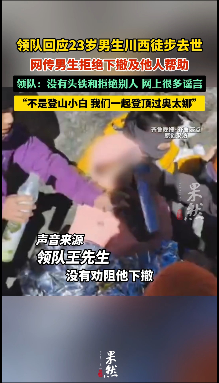 果然视频|领队回应23岁男生徒步去世:不是小白,网上很多谣言