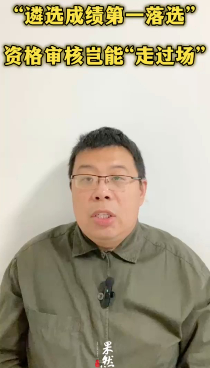 “遴选成绩第一落选”,资格审核岂能“走过场” 17:53 原创齐鲁晚报·齐鲁壹点客户端 微信扫码扫码下载客户端资格审核“前松后紧”,前期一路绿灯,终点突然亮红灯,这样的事情已经发生多次。资格审核成了“走过场”,不仅浪费了考生的时间与精力,也容易引发公众对招录程序公平性的质疑。