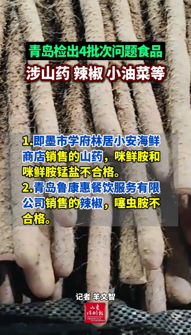 青岛检出4批次问题食品,涉山药、辣椒、小油菜等