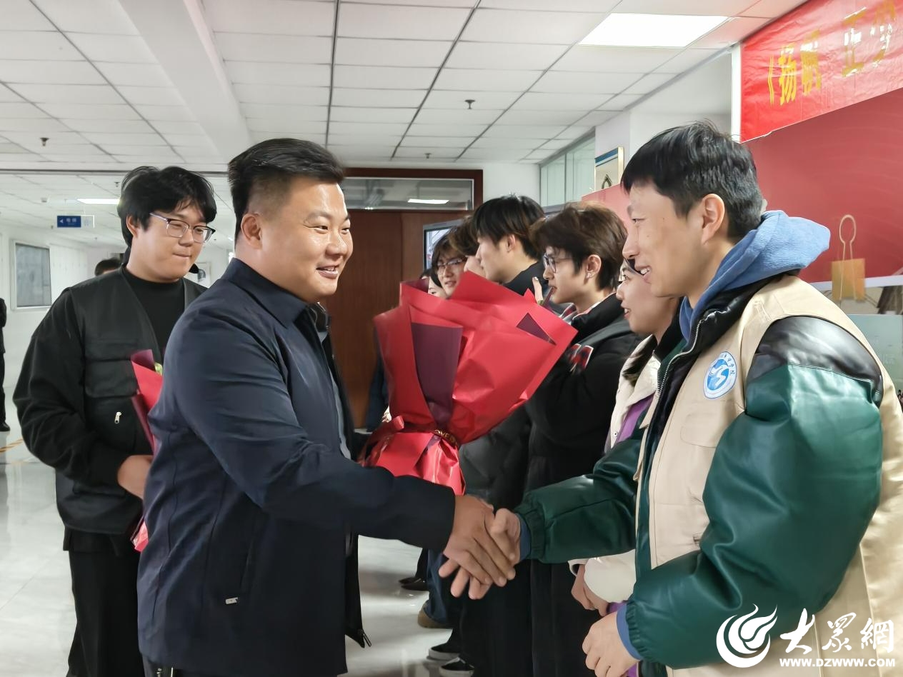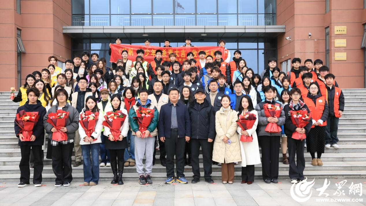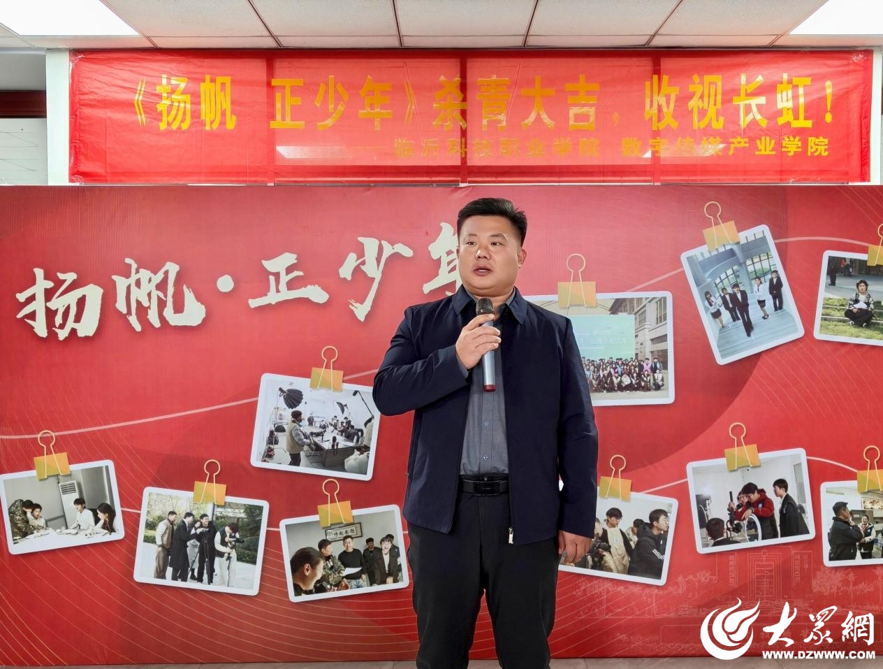 12月22日,山东省首部跨境电商题材数字短剧《扬帆・正少年》杀青仪式在临沂科技职业学院举行。临沂科技职业学院党委委员、副院长王淑军,主创团队成员、“数字短剧编创”微专业学生及嘉宾齐聚现场,共同见证这部承载着产教融合初心与青春奋斗力量的作品圆满完成拍摄。学校人文艺术系党总支书记张建军主持仪式。