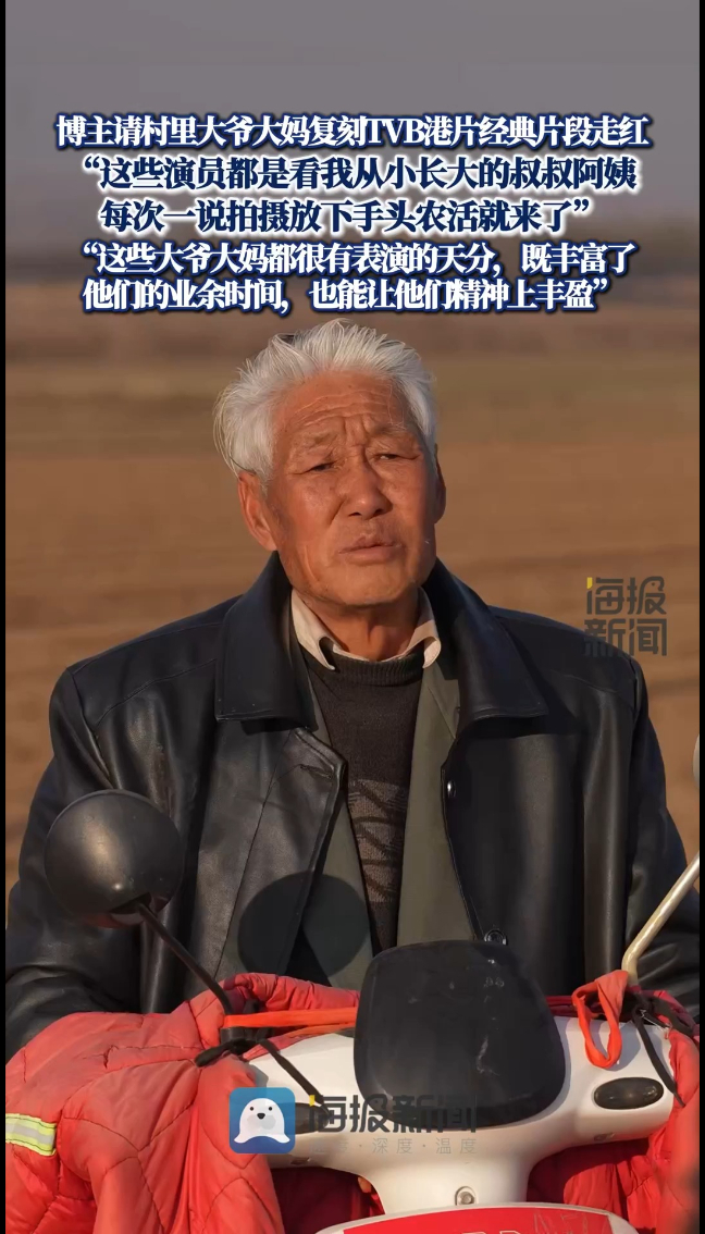 博主请村里大爷大妈复刻TVB港片经典片段走红:“演员都是看我从小长大的叔叔阿姨,每次一说拍摄放下手头农活就来了” 昨天15:14 原创大众新闻·海报新闻 微信扫码扫码下载客户端(大众新闻·海报新闻记者 朱晓冲 报道)