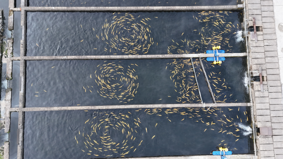 泉河村以优质山泉水养殖虹鳟鱼闻名,冬日的鱼塘在低温环境下雾气氤氲,与周边山林相映成趣。当天上午,刘国峰在取景时,突然发现水中鱼群整齐划一地绕圈游动,身姿灵动,场面十分壮观。当地村民告知,看到鱼群转圈会带来好运,刘国峰立刻定格下这一难得的画面。