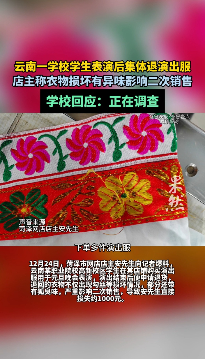 果然视频|云南一学校学生表演后集体退演出服,店主称衣物损坏还有异味!校方回应