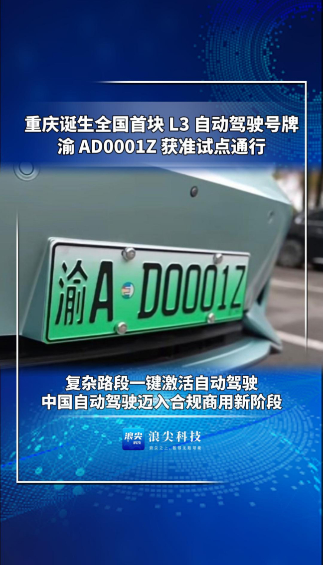 浪尖科技 | 重庆诞生全国首块L3自动驾驶号牌 渝AD0001Z获准试点通行 复杂路段一键激活自动驾驶 中国自动驾驶迈入合规商用新阶段