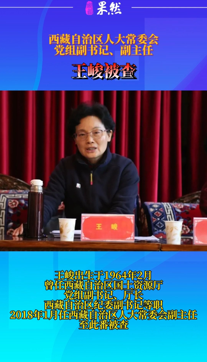 观政视频|西藏自治区人大常委会党组副书记、副主任王峻被查 昨天18:19 原创齐鲁晚报·齐鲁壹点客户端 微信扫码扫码下载客户端中央纪委国家监委网站12月24日消息,西藏自治区人大常委会党组副书记、副主任王峻涉嫌严重违纪违法,目前正接受中央纪委国家监委纪律审查和监察调查。
