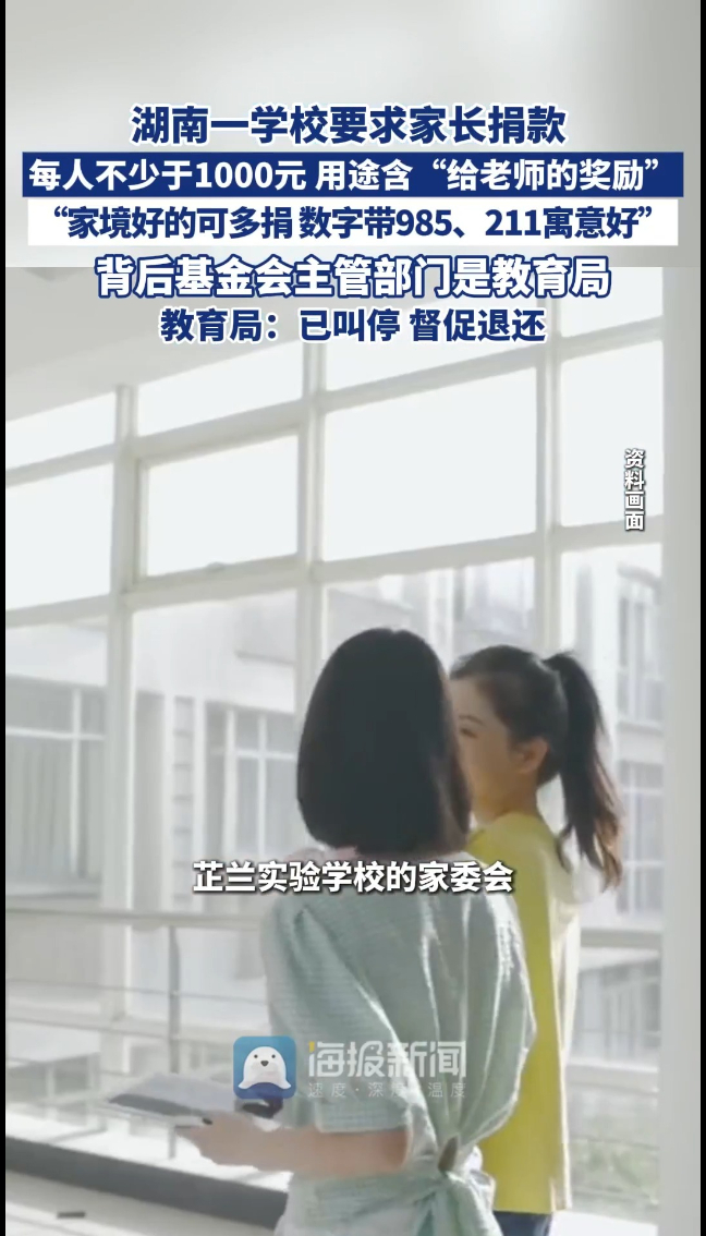 主播说丨湖南一学校要求家长捐款 每人不少于1000元 教育局:叫停募捐,成立专班调查
