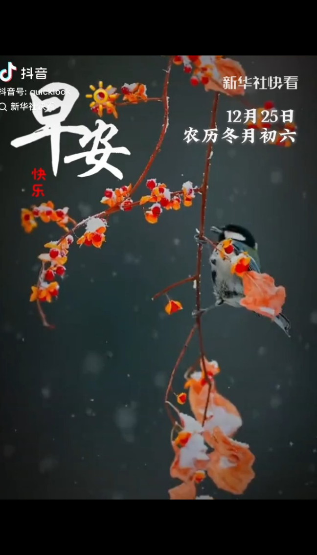 灵鸟衔朱实,愿您万事皆安!12月25日,农历冬月初六,瑞雪兆丰年,四季安康!