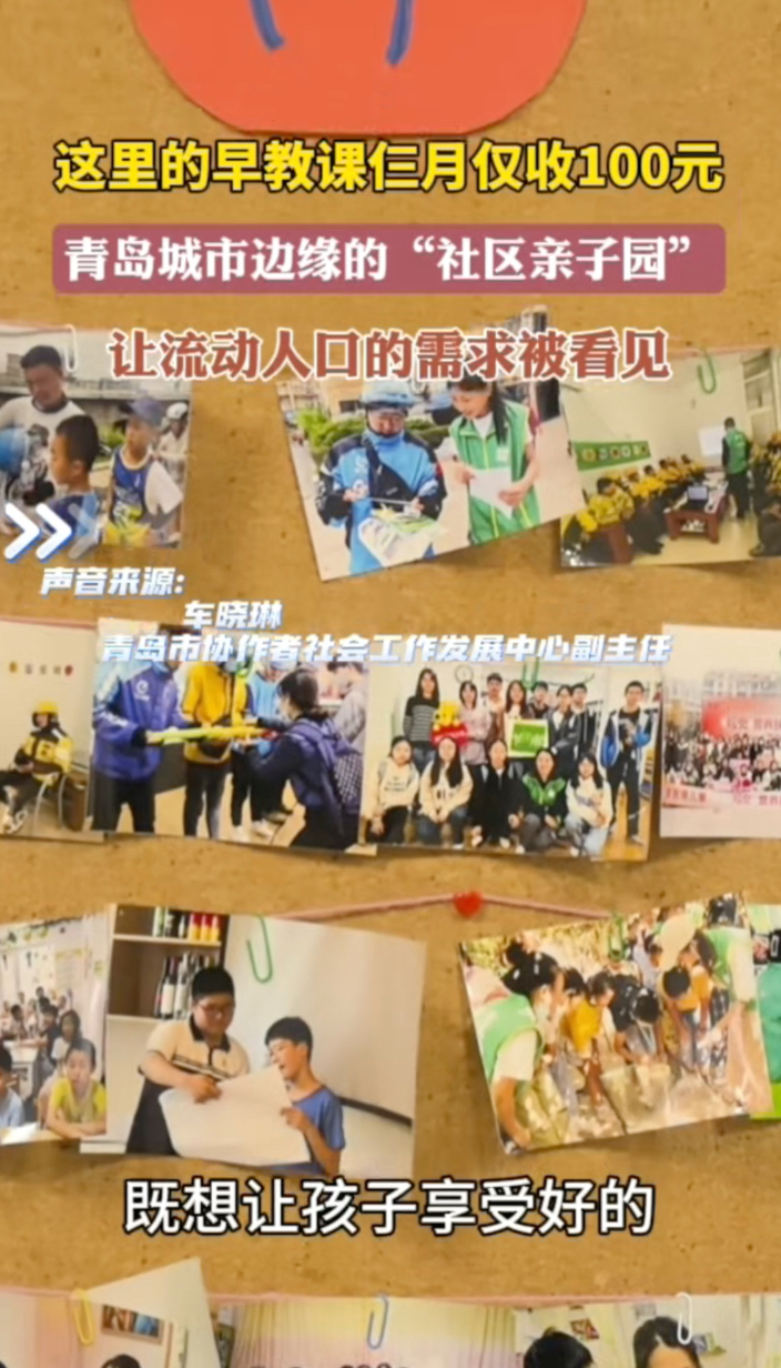 青岛城市边缘的“社区公益亲子园”,让流动人口的需求被看见 07:10 原创齐鲁晚报·齐鲁壹点客户端 微信扫码扫码下载客户端(记者 巩悦悦 实习生 )2020年,作为青岛市协作者社会工作发展中心副主任的“80后”宝妈车晓琳,第一次走进青岛李沧区和城阳区交界处的岳湖社区时,被眼前景象震惊了:“满地孩子乱跑,年轻父母们疲于奔命,根本顾不过来。”她发现,自己之前服务的都是6-18岁的孩子,0-3岁早期教育完全是空白。可当时社区里的流动人口家庭正处于生育高峰,他们最需要这方面的支持。