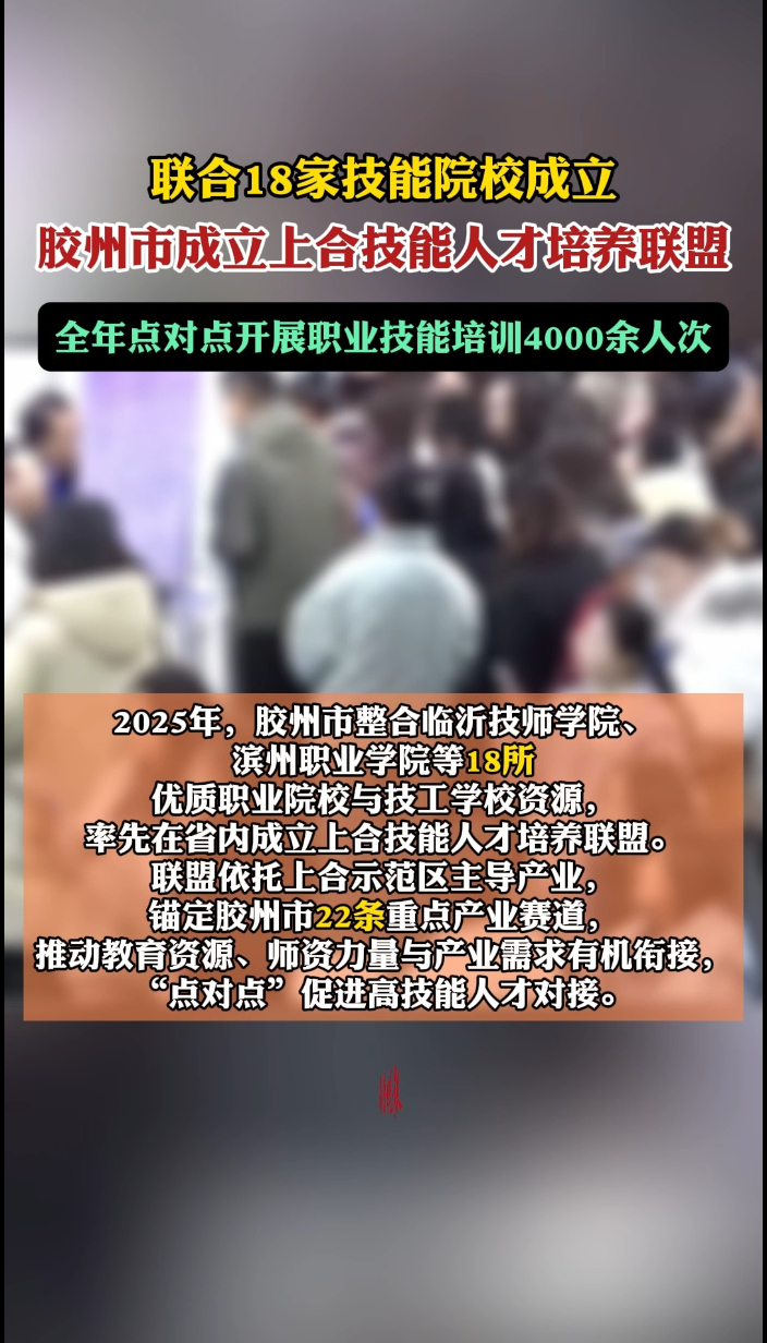 12月24日,胶州市人社局召开2025年技能人才队伍建设专题媒体见面会,并通报了该局全年的职业技能培训工作。2025年,胶州市整合18所优质职业院校与技工学校资源,成立上合技能人才培养联盟,依托上合示范区主导产业,“点对点”促进高技能人才对接。该局全年共组织开展各类职业技能培训4000余人次,全年通过自主评价发放职业技能等级证书1927人。