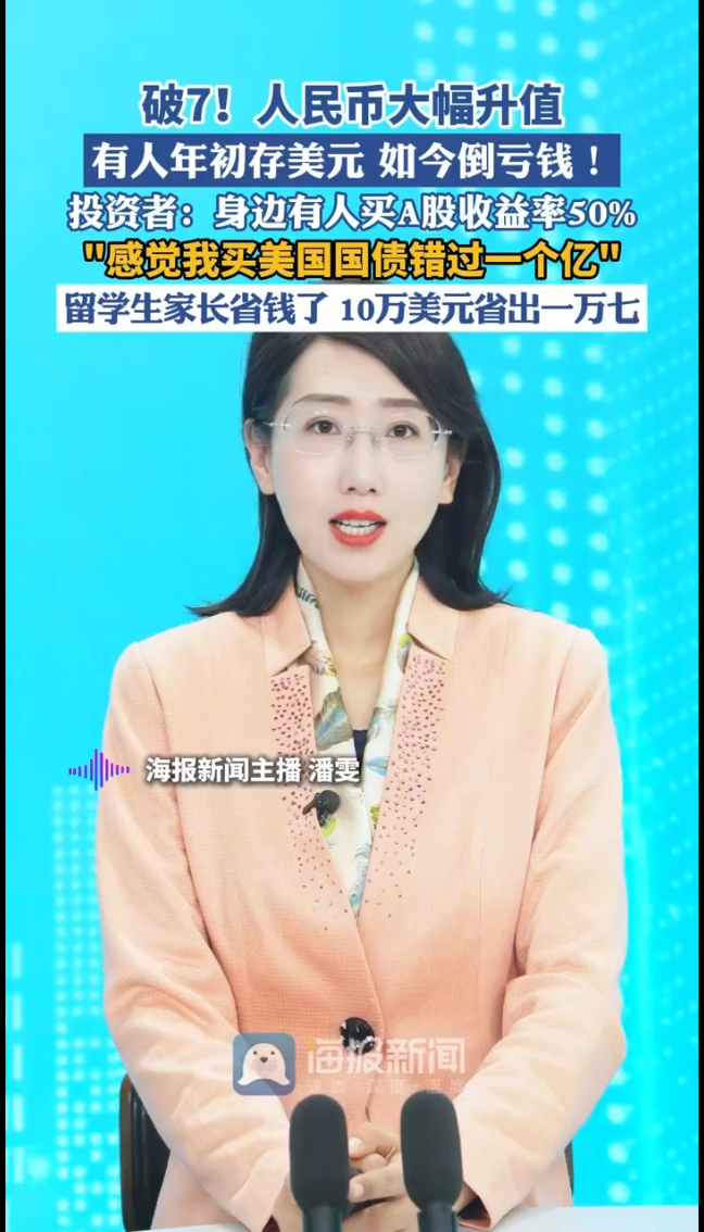 人民币一举破7!年初存美元的直接亏麻,买美债的眼红A股赚50%,这波升值有人欢喜有人忧!