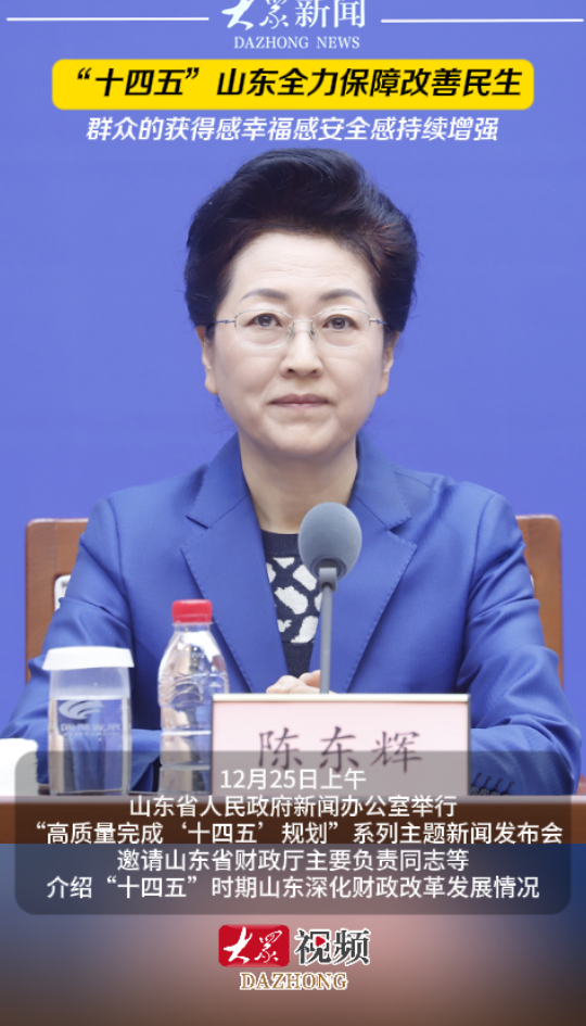 “十四五”山东全力保障改善民生,群众的获得感幸福感安全感持续增强大众新闻 17:56原创12月25日上午,山东省人民政府新闻办公室举行“高质量完成‘十四五’规划”系列主题新闻发布会,邀请山东省财政厅主要负责同志等介绍“十四五”时期山东深化财政改革发展情况。(大众新闻记者 高广超 杨烨莹 策划 马玉峰 陈巨慧)