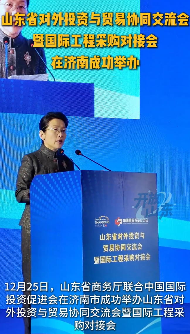 12月25日,山东省对外投资与贸易协同交流会暨国际工程采购对接会在济南市成功举办,推动我省企业与央企及省外企业合作,深化省内对外投资、对外承包工程、跨境电商等外贸新业态企业融合协同发展。