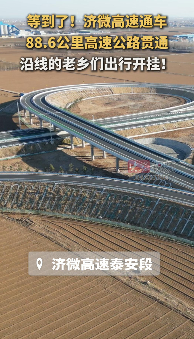 12月26日零点,济微高速全线贯通。这条88.6公里的动脉连接济南、泰安、济宁,其中泰安段全长71.3公里,助力泰安在全省率先实现“县县三高速”。