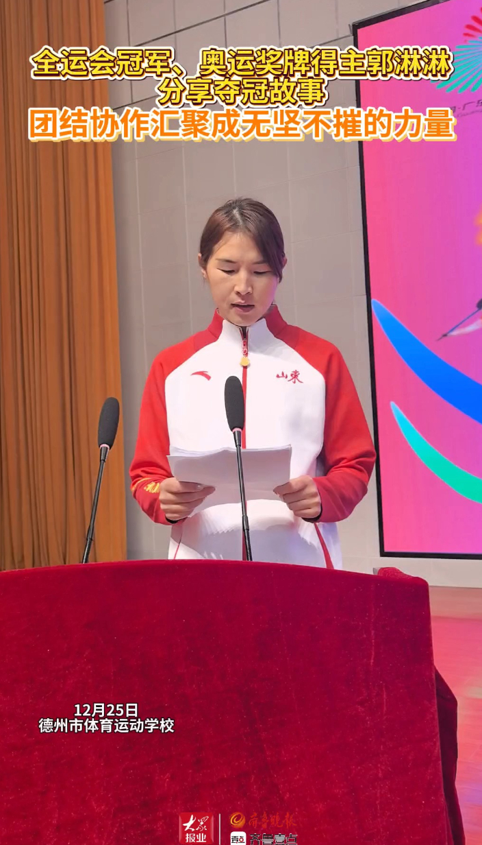 果然视频|全运会冠军、奥运奖牌得主郭淋淋分享夺冠故事齐鲁晚报·齐鲁壹点客户端 09:19原创12月25日,德州市“全运冠军公益行”活动走进德州市体校。全运会冠军、奥运奖牌得主郭淋淋分享夺冠故事:团结协作汇聚成无坚不摧的力量。(齐鲁晚报·齐鲁壹点 马雪平)