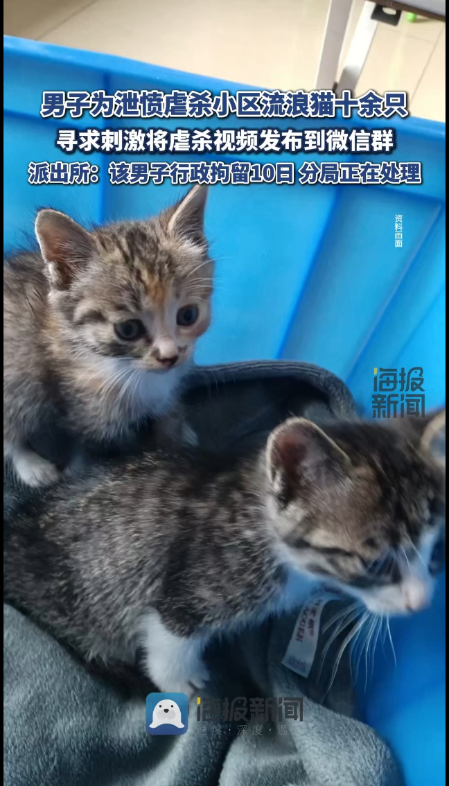 男子为泄愤虐杀小区流浪猫十余只,寻求刺激将虐杀视频发布到微信群 派出所:该男子行政拘留10日海报新闻 | 09:27 原创大众新闻·海报新闻 微信扫码扫码下载客户端(大众新闻·海报新闻记者 张旭 报道)