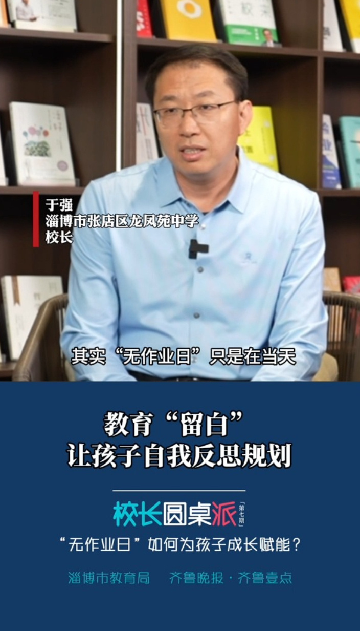 校长有话说|于强:教育“留白”让孩子自我反思规划大众报业·齐鲁壹点 09:48“无作业日”只是在当天没有具体的书面、纸质作业,这实际上是给了孩子一段“留白”的时间。在教育与孩子成长的过程中,这种自我反思与规划的时间,比作业更为重要。