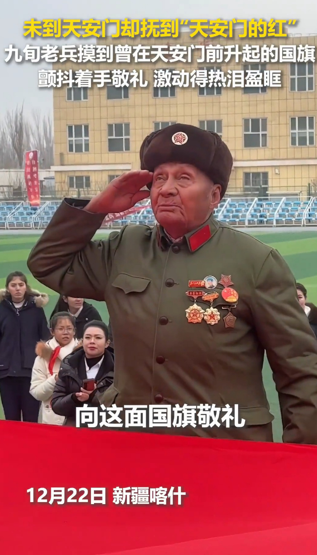 他摸着曾在天安门前升起的国旗哭了人民日报 11:10#九旬老兵向国旗敬礼场面看到泪目# 近日,新疆喀什,九旬老兵摸到曾在天安门前升起的国旗,颤抖着手敬礼,激动得热泪盈眶。网友:这面国旗,湿了老兵的眼,也照亮了少年的心!(人民日报记者 李亚楠)