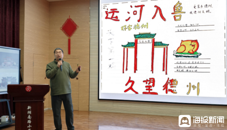 12月24日下午,德州市新湖南路小学礼堂内气氛热烈,笑声与掌声不断。德州市政协“文史讲堂进校园”系列活动迎来年度收官之讲——市政协文化文史和学习委员会主任王德胜以“我家住在两河边·德州运河故事”为题,为学生们带来了一场活泼有趣的文化讲座。这是今年王德胜走进中小学开展“爱家乡·大运河”宣讲的最后一场,标志着年度50场次义务宣讲任务圆满完成。