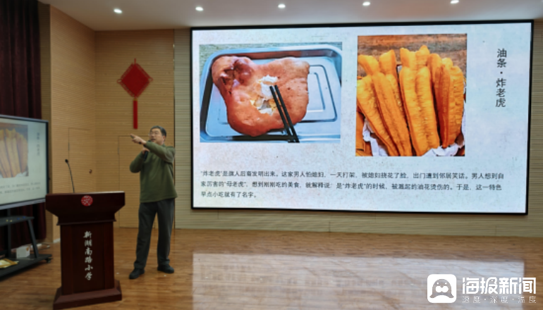讲座最“接地气”的部分当属德州本土文化。当屏幕上出现“靴子城”古城地图、“九达天衢”的牌坊、苏禄王墓时,家乡的历史变得具体可感。而说到美食,课堂气氛更是达到高潮——“德州扒鸡原来叫荷叶鸡!”“‘炸老虎’的传说竟然是因为怕媳妇!”同学们听得津津有味,不时发出会心的笑声。