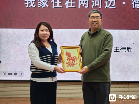 活动最后,德州市新湖南路小学党总支书记李英娟代表学校向王德胜赠送了一份特别的礼物——一幅由学生创作的剪纸作品。画面中,一匹朝气蓬勃的小骏马与盛放的牡丹相映成趣。牡丹寓意着今年的“文史讲堂进校园”活动圆满收官、硕果芬芳;而那匹昂扬的小骏马,既象征着来年活动奔腾向前、开拓新程,也恰如新湖南路小学的孩子们——充满活力,未来可期。这份承载着祝福与期许的礼物,藏着对新岁的热望;凝着“快意从容、马到成功”的盼头;有着“奔赴热爱”的底气!(通讯员 张美冉)