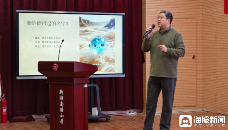 “谁给德州起的名字?”讲座一开始,王德胜就用提问带领同学们穿越时空,从秦始皇嬴政改名“德水”,到汉高祖刘邦设“安德县”,再到隋文帝杨坚正式设立“德州”,三位皇帝的故事瞬间吸引了所有人的注意力。