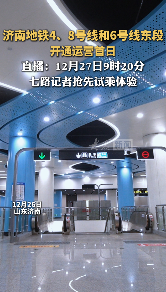 直播预告|济南地铁三线齐发跻身全国20强,7路直击与泉水川流的地铁线大众新闻 13:28原创济南地铁4、8号线和6号线东段将于12月27日10时15分开通运营,届时市民可在任一车站进站乘车。三条新线开通,再加上即将在月底前通车的济阳线,济南轨道交通的通车里程将跃升至248.5公里,跻身全国前20名。大众日报·大众新媒体大平台、齐鲁晚报·齐鲁壹点、大众网·海报新闻联合直播,7路记者将于12月27日 9:20进行直播,直击通车现场。(大众新闻记者 王梓润 策划 马玉峰 王磊)