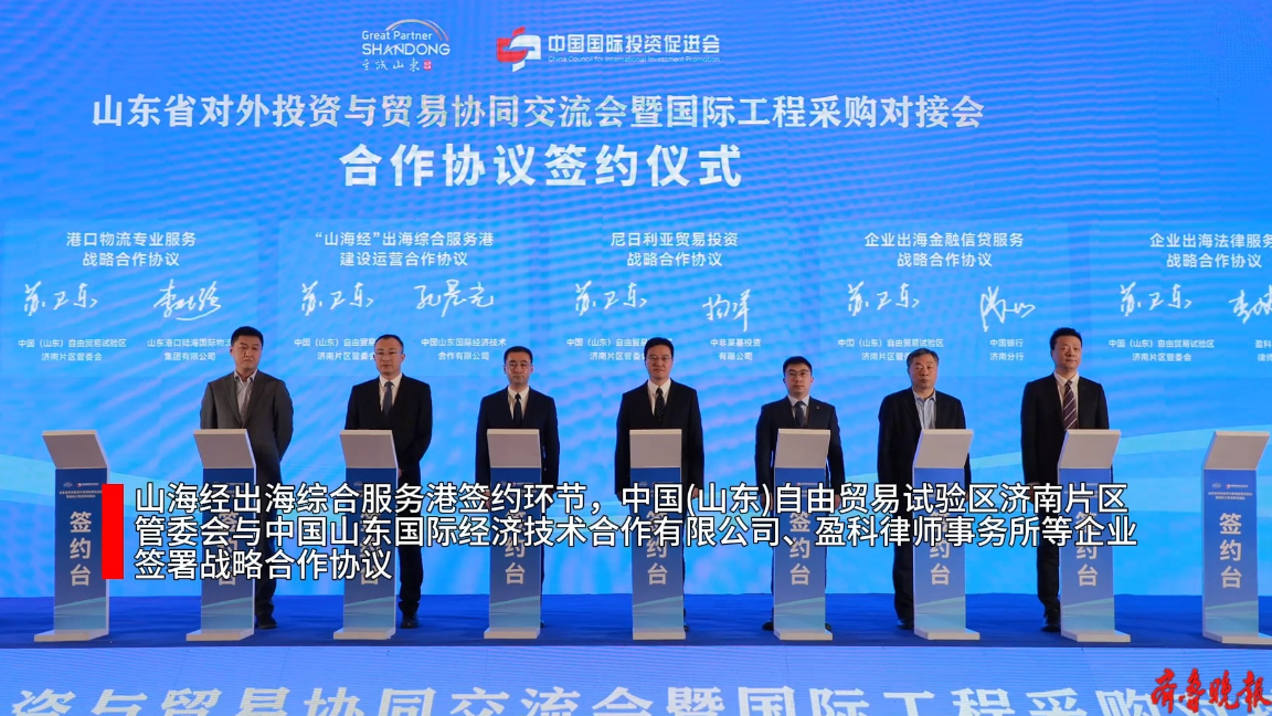 镜头聚焦丨山东省对外投资与贸易协同交流会暨国际工程采购对接会大众新闻·齐鲁壹点 16:09原创12月25日,山东省对外投资与贸易协同交流会暨国际工程采购对接会在济南成功举办。210余家知名央企和省内外领军企业的嘉宾代表、各市商务局负责人参加活动,山东省商务厅与中国国际投资促进会签订战略合作协议,山海经出海综合服务港签约。