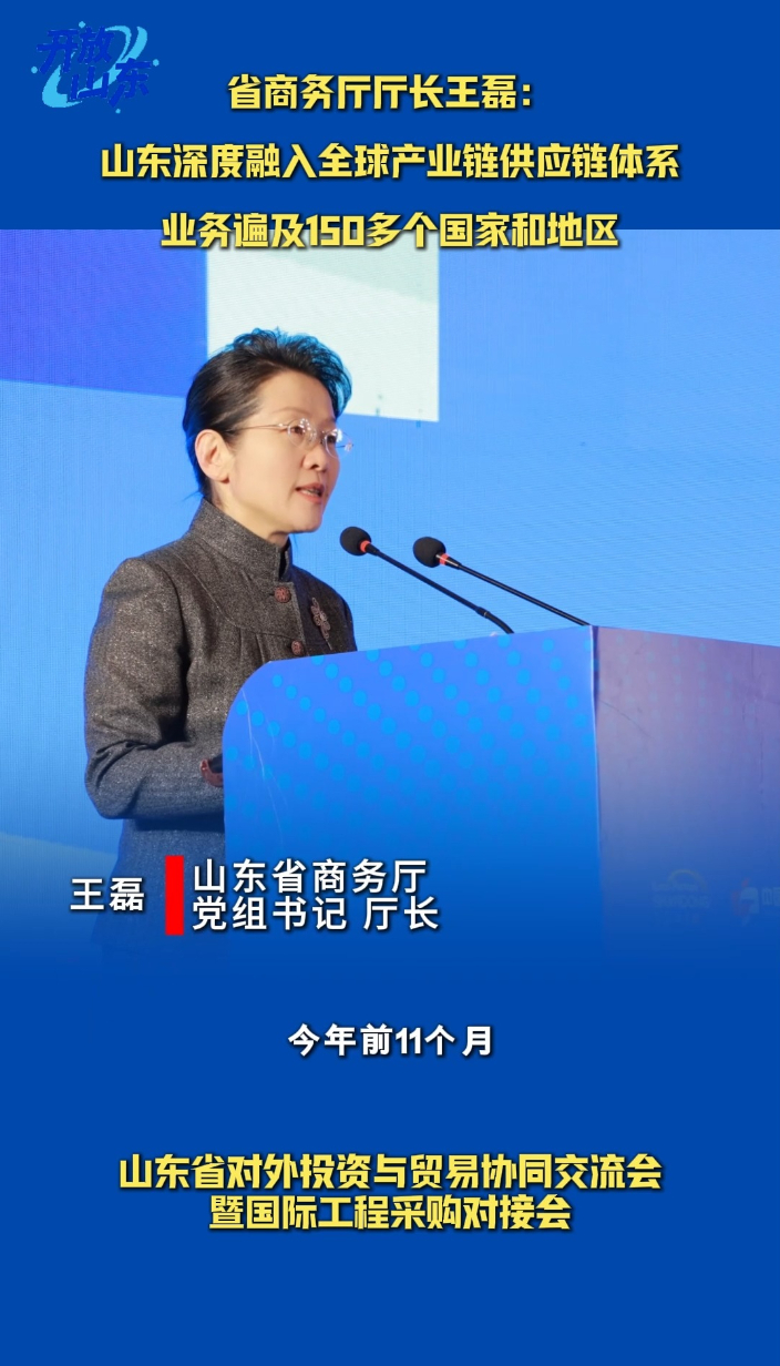 镜头聚焦丨山东深度融入全球产业链供应链体系大众报业·齐鲁壹点 15:2412月25日,山东省对外投资与贸易协同交流会暨国际工程采购对接会在济南成功举办。省商务厅党组书记、厅长王磊表示,山东深度融入全球产业链供应链体系,业务遍及150多个国家和地区。