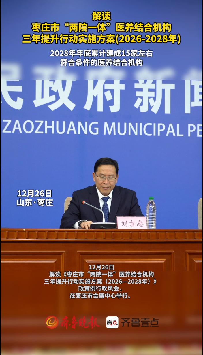 到2028年底,枣庄将建成15家“两院一体”医养结合机构齐鲁晚报·齐鲁壹点客户端 15:38原创12月26日,解读《枣庄市“两院一体”医养结合机构三年提升行动实施方案(2026—2028年)》政策例行吹风会,在枣庄市会展中心举行。