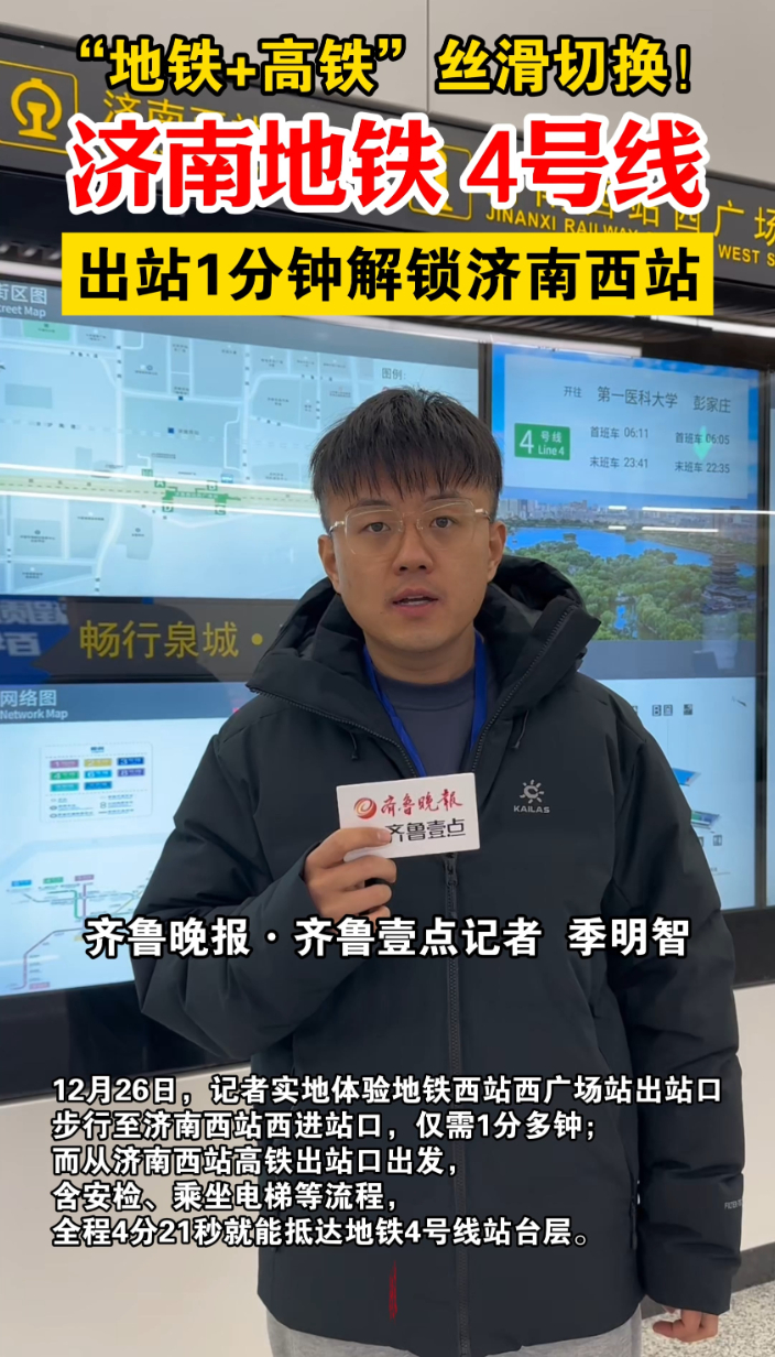 果然视频|济南地铁4号线出站步行1分钟解锁济南西站大众报业·齐鲁壹点 17:51济南地铁4号线与济南西站的换乘用时多少?记者实测给出答案!从地铁西站西广场站出站口步行至济南西站西进站口,仅需1分多钟;而从济南西站高铁出站口出发,含安检、乘坐电梯等流程,全程4分21秒就能抵达地铁4号线站台层。高效换乘无缝衔接,既方便了外地来济旅客,也满足了本地市民出游通勤需求,让轨道出行更省心。(齐鲁晚报·齐鲁壹点记者 樊瑞琳 季明智)
