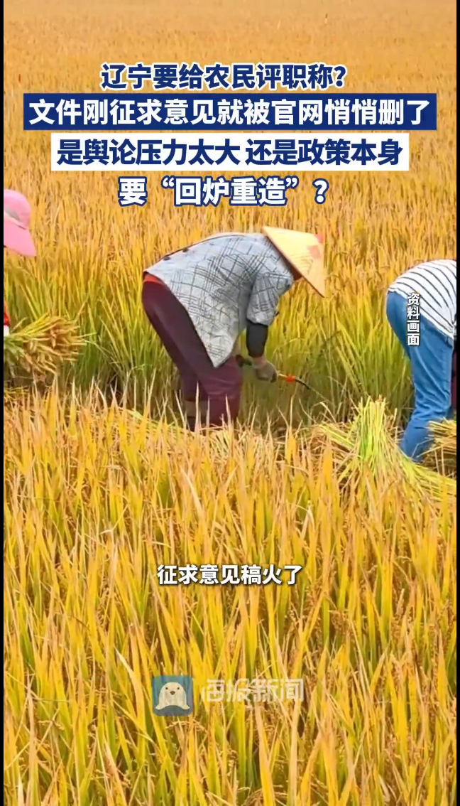 主播说 | 辽宁要给农民评职称? 文件刚征求意见就被官网悄悄删了