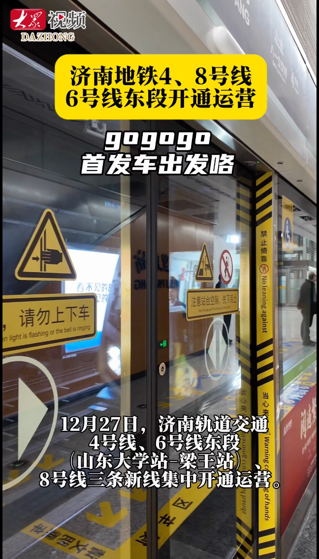 gogogo出发咯!济南地铁4号线、6号线东段、8号线开通运营大众新闻 11:08现场12月27日,济南地铁4号线、6号线东段(山东大学站-梁王站)、8号线三条新线集中开通运营。此次开通后,济南地铁运营线路增至6条,标志着济南地铁正式进入网络化运营新阶段。(大众新闻记者 陈景郁 范薇 刘建宏 拍摄 刘明顺)