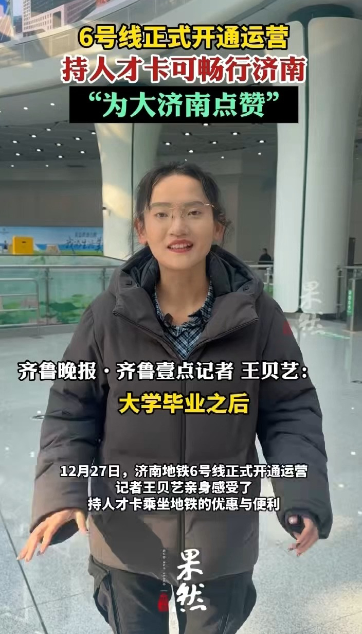 12月27日,济南地铁6号线正式开通运营,齐鲁晚报·齐鲁壹点记者亲身感受了持人才卡乘坐地铁的优惠与便利。