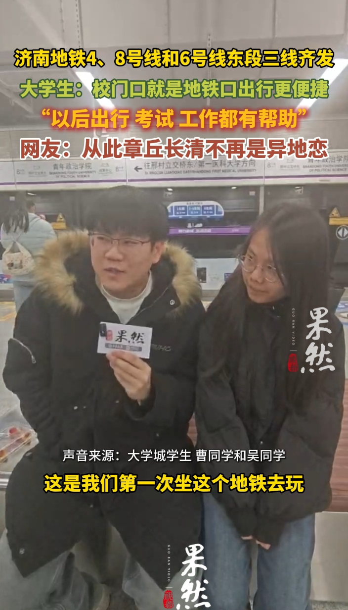 果然视频|地铁三线齐发,章丘和长清不再“异地恋”齐鲁晚报·齐鲁壹点客户端 18:30原创12月27日,济南地铁4号线、6号线东段和8号线三条新线集中开通运营。对于沿线众多高校学子来说,这是一条畅达城市的“青春快线”,不仅让学习、生活、购物更加便捷,也让章丘与长清之间不再是“异地恋”。(齐鲁晚报·齐鲁壹点爆料电话:0531-85193656;邮箱:405617016@qq.com)