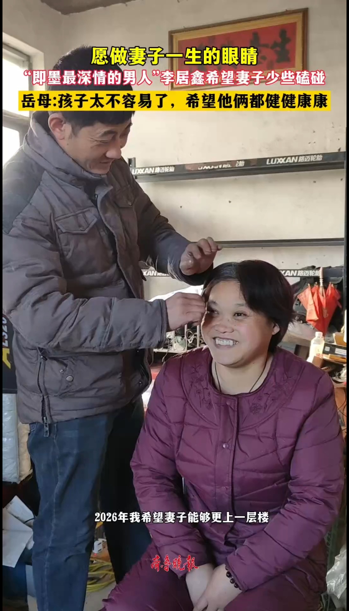 凡人微光·2025青岛面孔丨“愿做妻子一生的眼睛!”大众报业·齐鲁壹点 09:53十一年如一日,他用坚实的臂膀为失明的妻子张锡英撑起一片晴空。从不离不弃的守护,到投身公益的回馈,即墨汉子李居鑫的故事感动万千网友,被誉为“即墨最深情的男人”,并荣获青岛市“文明市民”等荣誉。新的一年即将到来,他的愿望依然朴素而坚定:继续做妻子的“眼睛”,希望妻子生活上少些磕碰,牵着她的手,走过每一个平凡而温暖的明天。(齐鲁晚报·齐鲁壹点 宋祖锋)