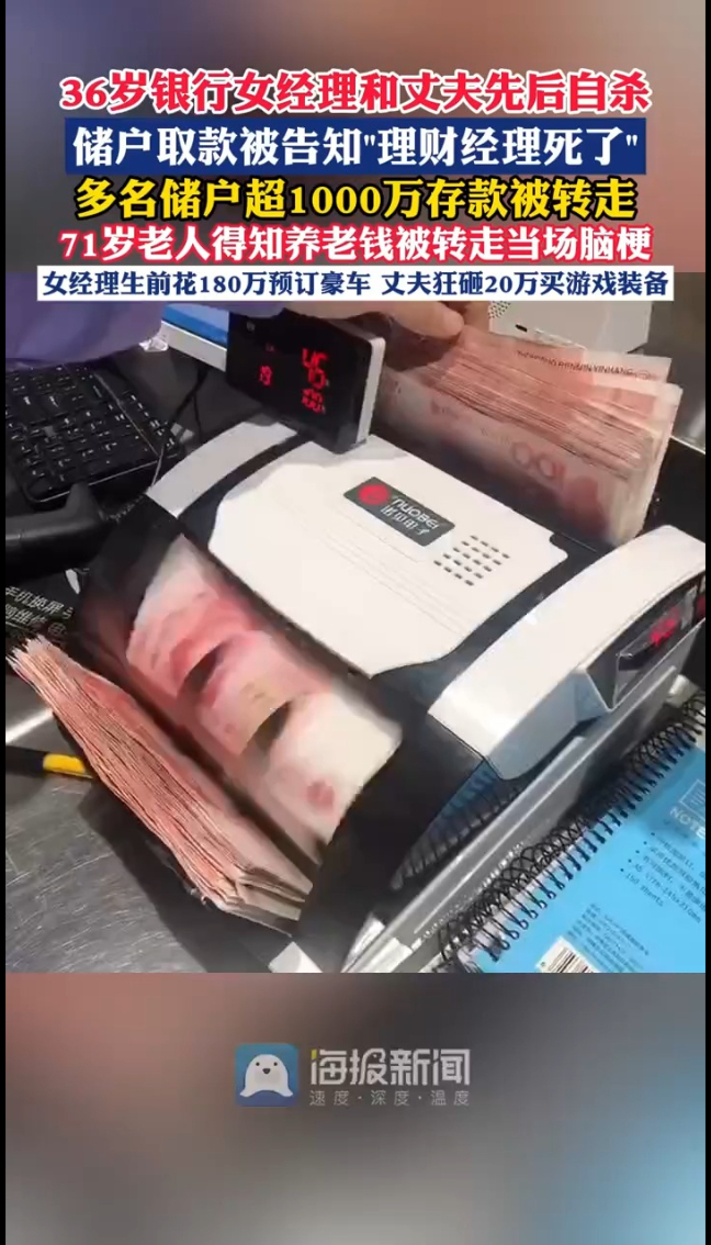 主播说 | 36岁银行女经理和丈夫先后自杀,储户取款被告知“理财经理死了”