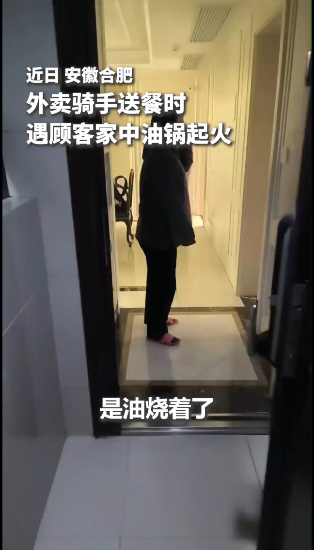 外卖骑手送餐时遇到顾客家中油锅起火,临危不乱、处置得当,成功控制火势。为骑手王林点赞!